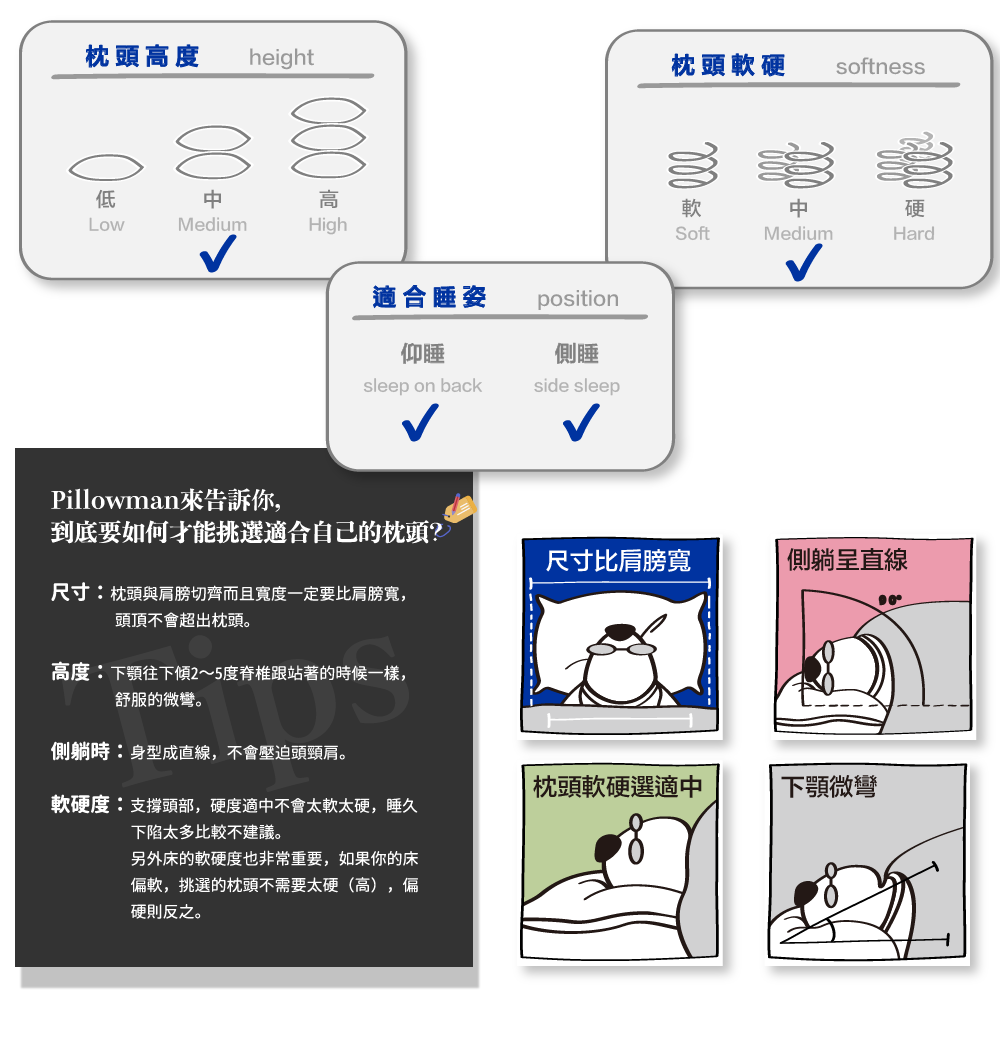 經典枕#3號 高支撐: 正躺 偏高 側躺 偏高