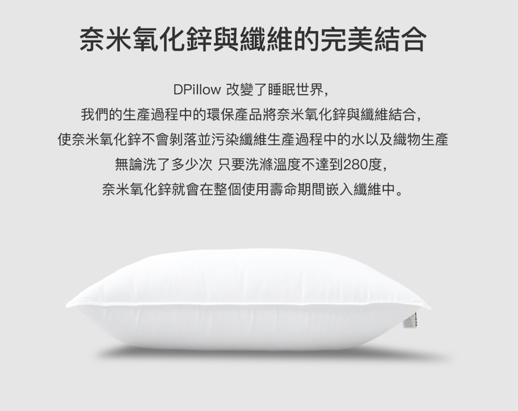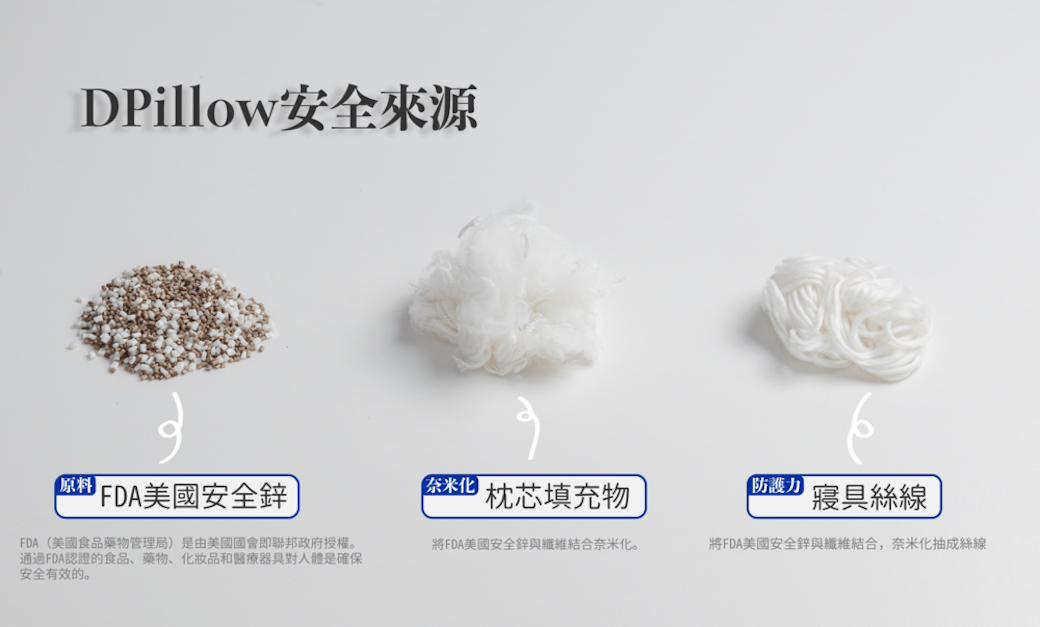․枕頭表布使用DPILLOW專利材料,以奈米技術將美國FDA認證安全級氧化鋅