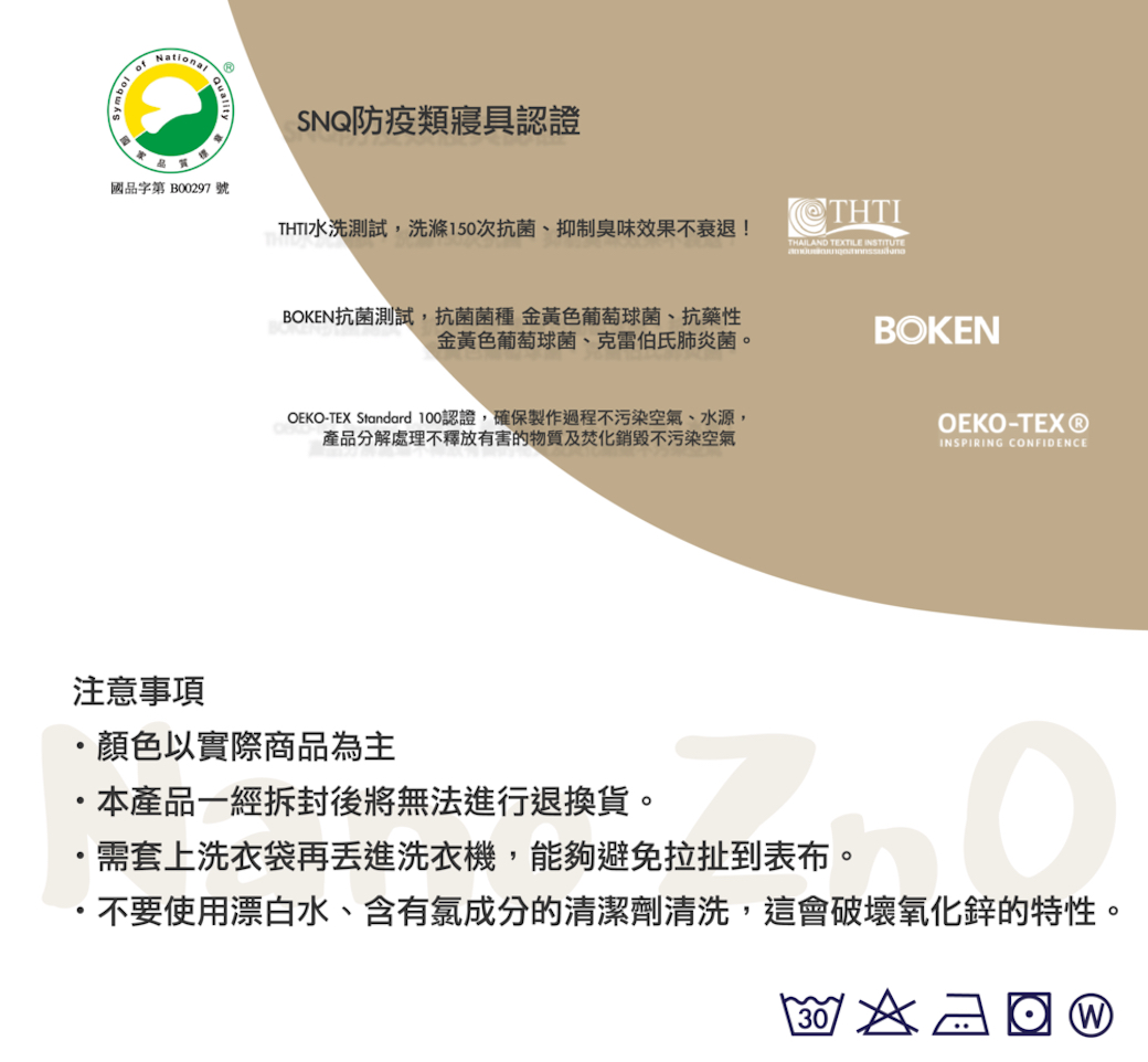 ․枕頭材質:表/底布:100%奈米氧化鋅